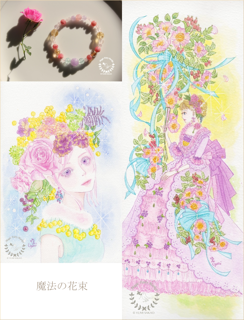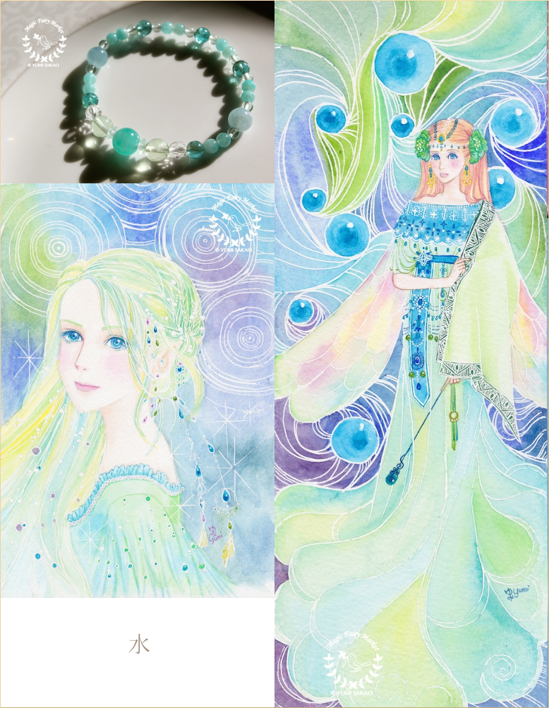 5種類のブレスレットを、5人の精霊と5つのドレスでセットにして、コラボさせていただきました。